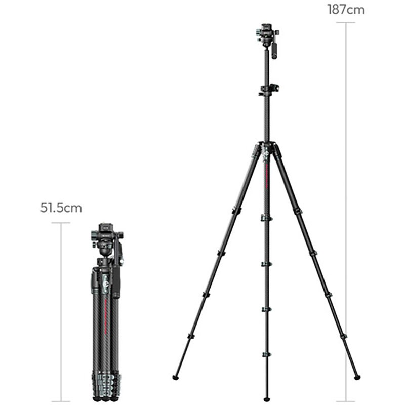 سهپایه حرفهای و چندکاره برای عکاسی و فیلمبرداری Ulanzi JJ06 ساخته شده از کربن با وزن حدود 1.76 کیلوگرم ، ظرفیت تحملی 18 کیلوگرم(ظرفیت سه پایه) ، دارای ستون مرکزی دو بخشی جهت قرار دادن دوربین در زاویههای مختلف(حتی در حالت افقی و پایین)، حداکثر ارتفاع 187 سانتی متر ، حداقل ارتفاع 44 سانتی متر ، ارتفاع جمع شده 51.5 سانتی متر