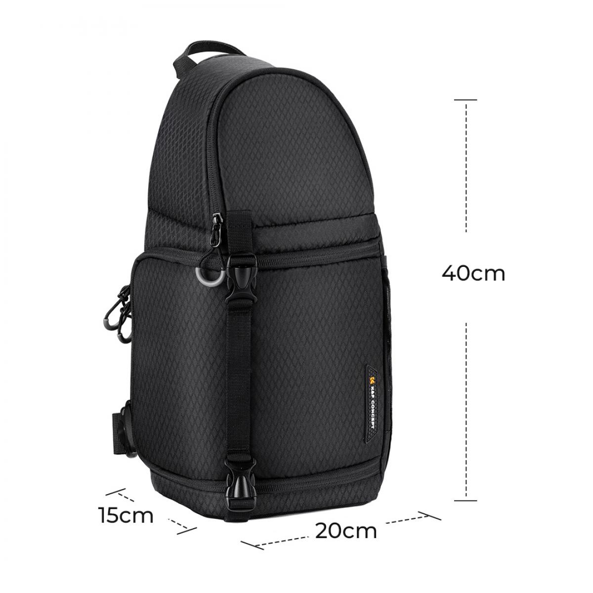 کیف اسلینگ دوربین مشکی ۱۰ لیتری از K&F Concept فضای کافی برای یک دوربین به همراه دو لنز و وسایل شخصی شما فراهم میکند. این کیف سبک دارای جداکنندههای داخلی قابل تنظیم است تا تجهیزات خود را بهصورت منظم سازماندهی کنید.