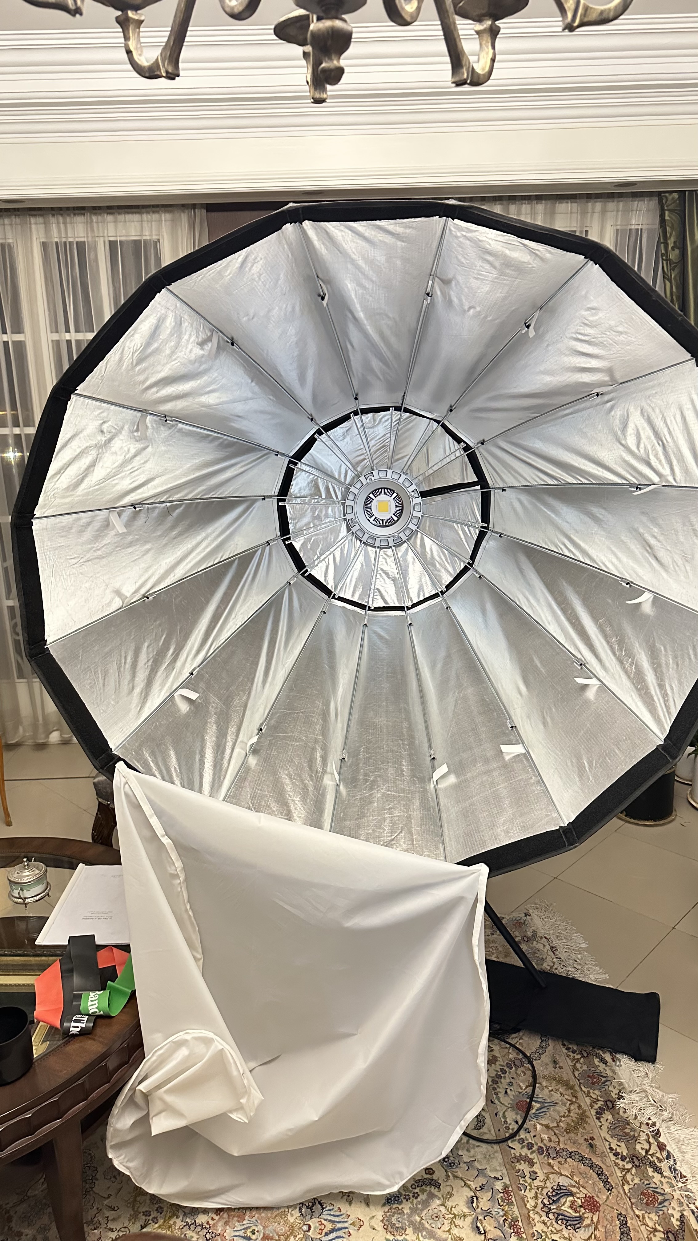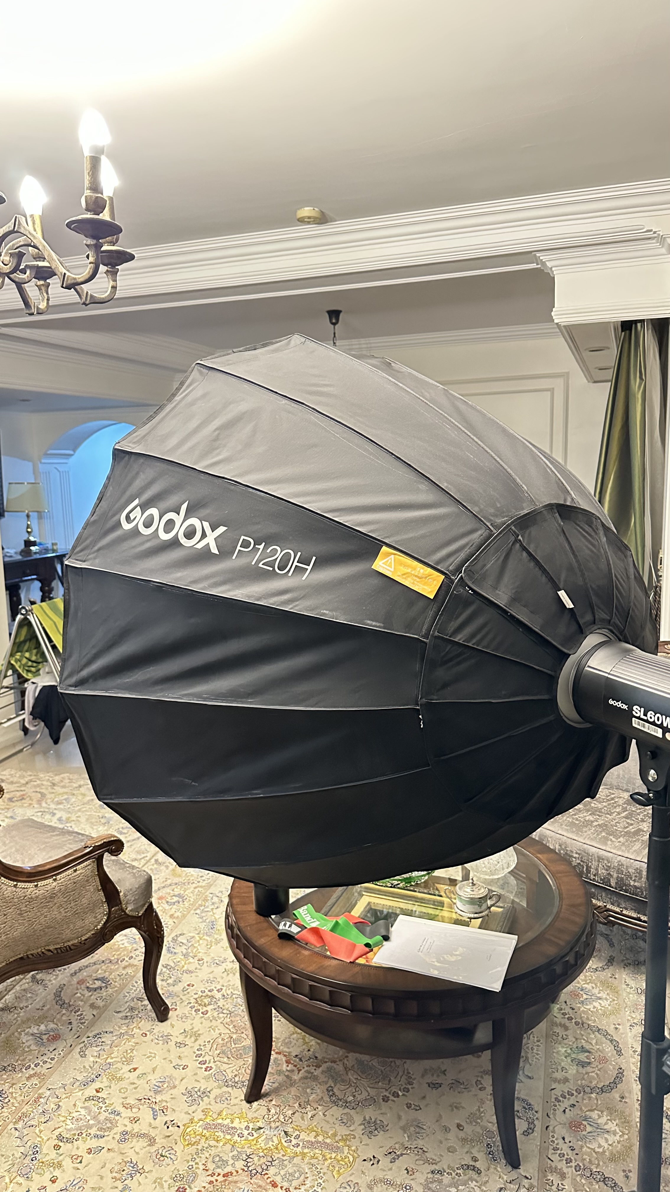 سافت باکس پارابولیک godox قطر دهانه 120…p120h مانت بوئنز ♦️فریم اسکلت فلزی♦️داخل نقره ای همراه با ۲ عدد دیفیوزر♦️سری نسوز هست که در دمای بالا اسیب نبینه♦️پرتابل نیست. و داخل استودیو استفاده میشه♦️ قیمت حال حاضر در بازار اگر پیدا کنید ۱۶ توامن هست این زیاد استفاده نشده و سالمه مانت اش فلزی هست ♦️توجه کنید این فقط سلفت باکسه نور همراهش نیست